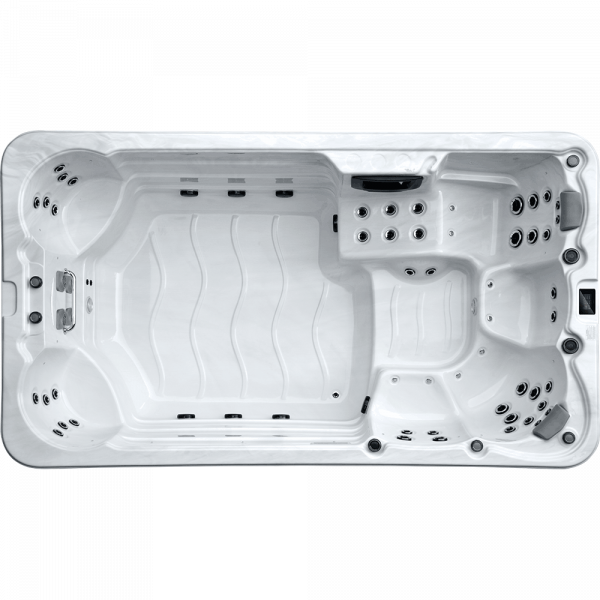 The standard depth swim spa series from Riptide, featuring full foam insulation and standard swim pumps