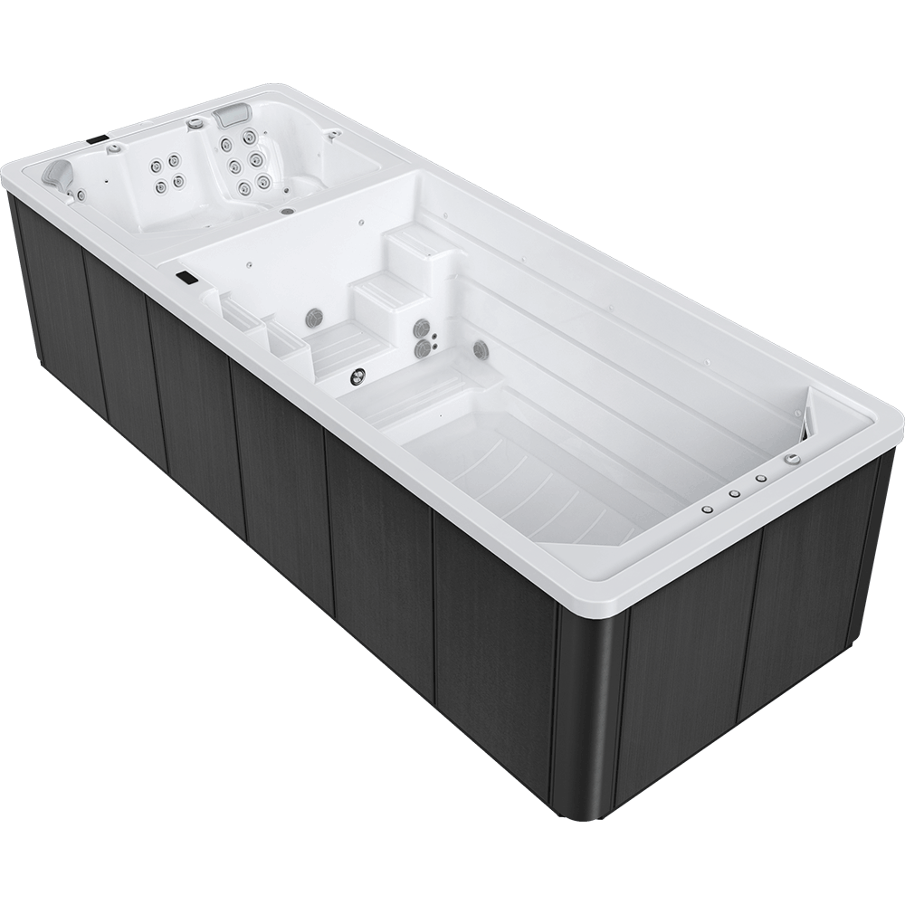 Unleash the experience of a five-star swimming pool. Unlike any other swim spa on the market, Our new inverter system allows us to use 3.5hp variable speed pumps and a 3” water jet pipe which can deliver up to 20,000 litres of water per minute. This results in saving up to a staggering 70% on electricity cost. Using this technology allows us to deliver a smoother flow of water without any white water waves, at a fraction of the cost of a conventional swim spa.