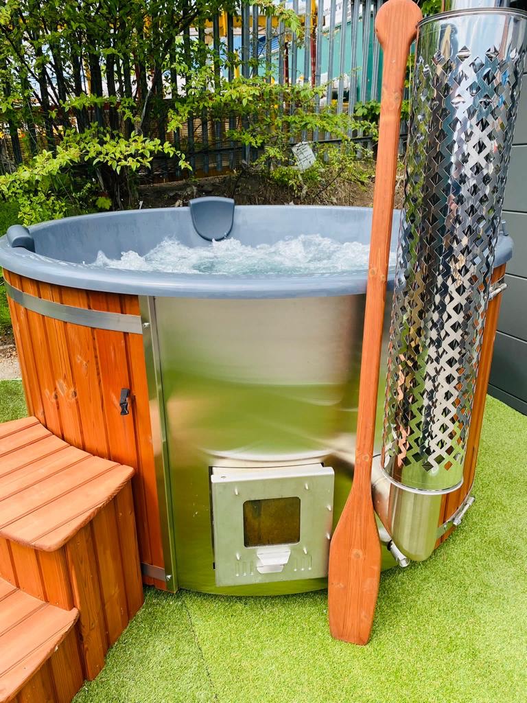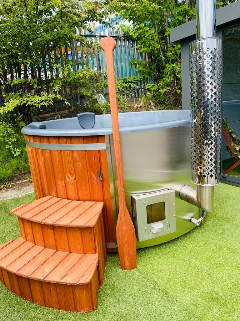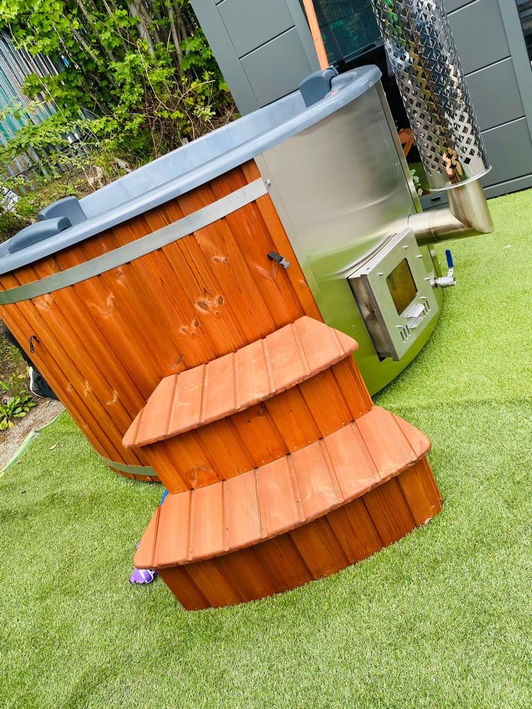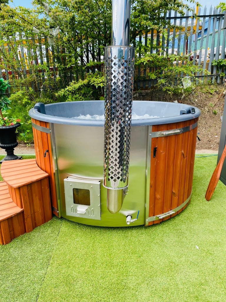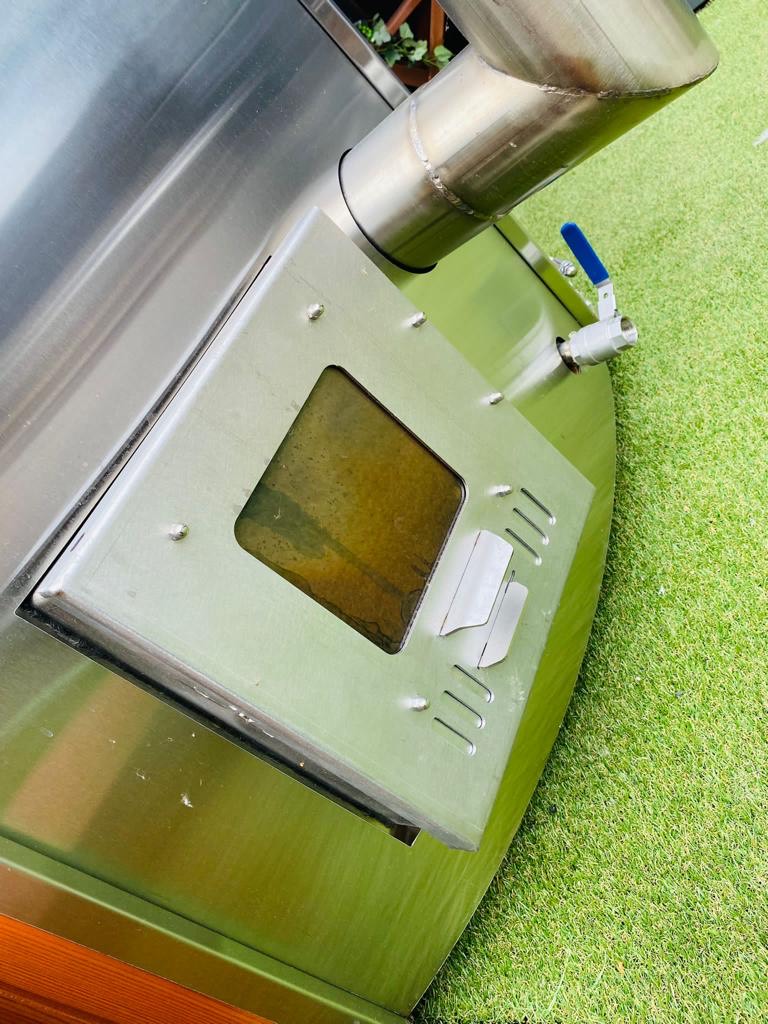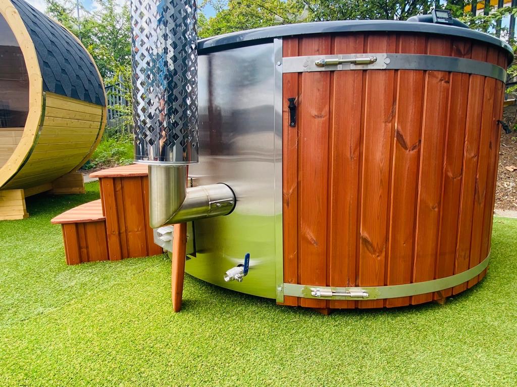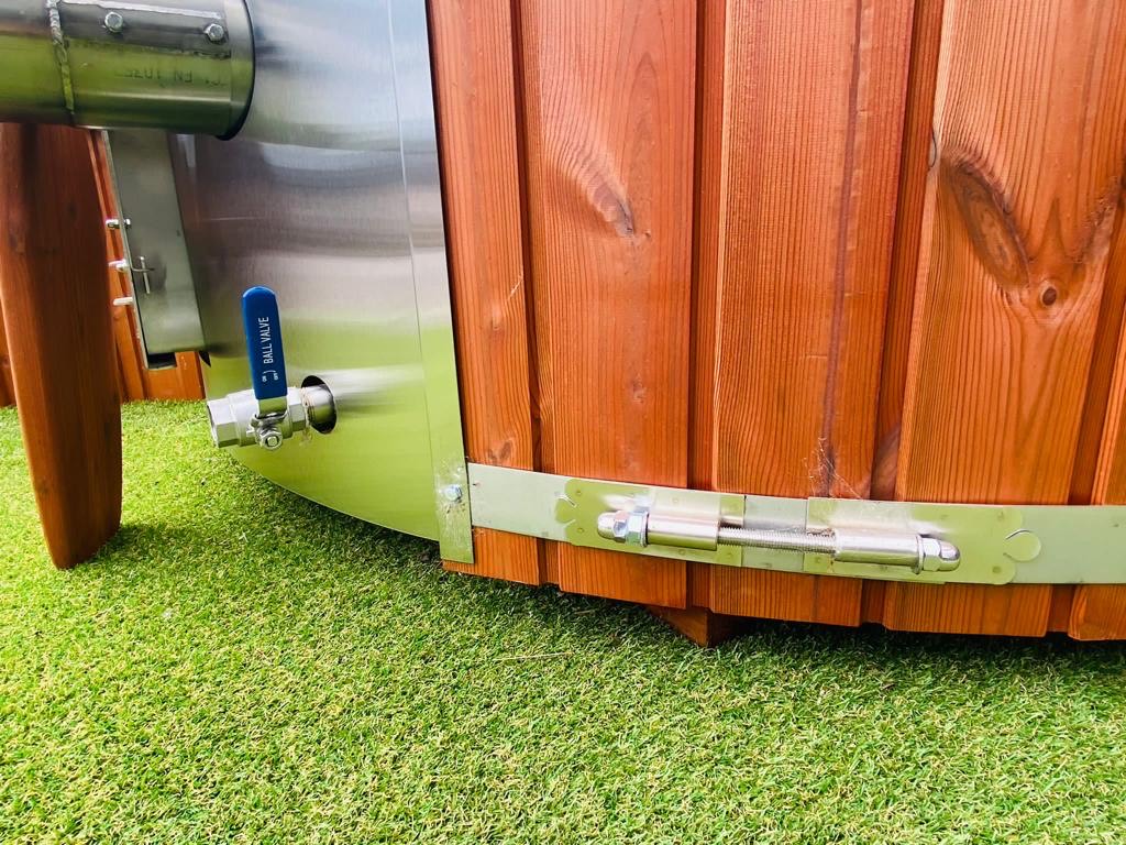 Height 43 inches (1100 mm), External diameter 78,7 inches (2000 mm), Internal width 70,9 inches (1800 mm), Depth 33,5 inches (850 mm), Chimney height 106,3 x 114,2 inches (2,7 – 2,9 m) measured from the ground up, Package weight 418,8 lbs (190 kg), Water volume 317 gallons (1200 l), Heating time Summer ± 1.5 hrs, Winter ± 2.5 hrs, Heater fuel Softwood/Hardwood x2 full Burns = 36 – 38 degrees 1.5 – 2.5 hrs, Main heater material Stainless steel (304 grade) 28kw