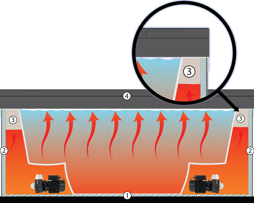 This range also includes Oasis Spa’s Skirt Lock Insulation System. This features our new edge foam insulation injected into the top quarter of the spa which gives a significant reduction in heat loss whilst still giving ample access to all interior equipment for maintenance purposes. THe new Equinox range is designed to minimise heat loss as much as possible by using the following four elements: