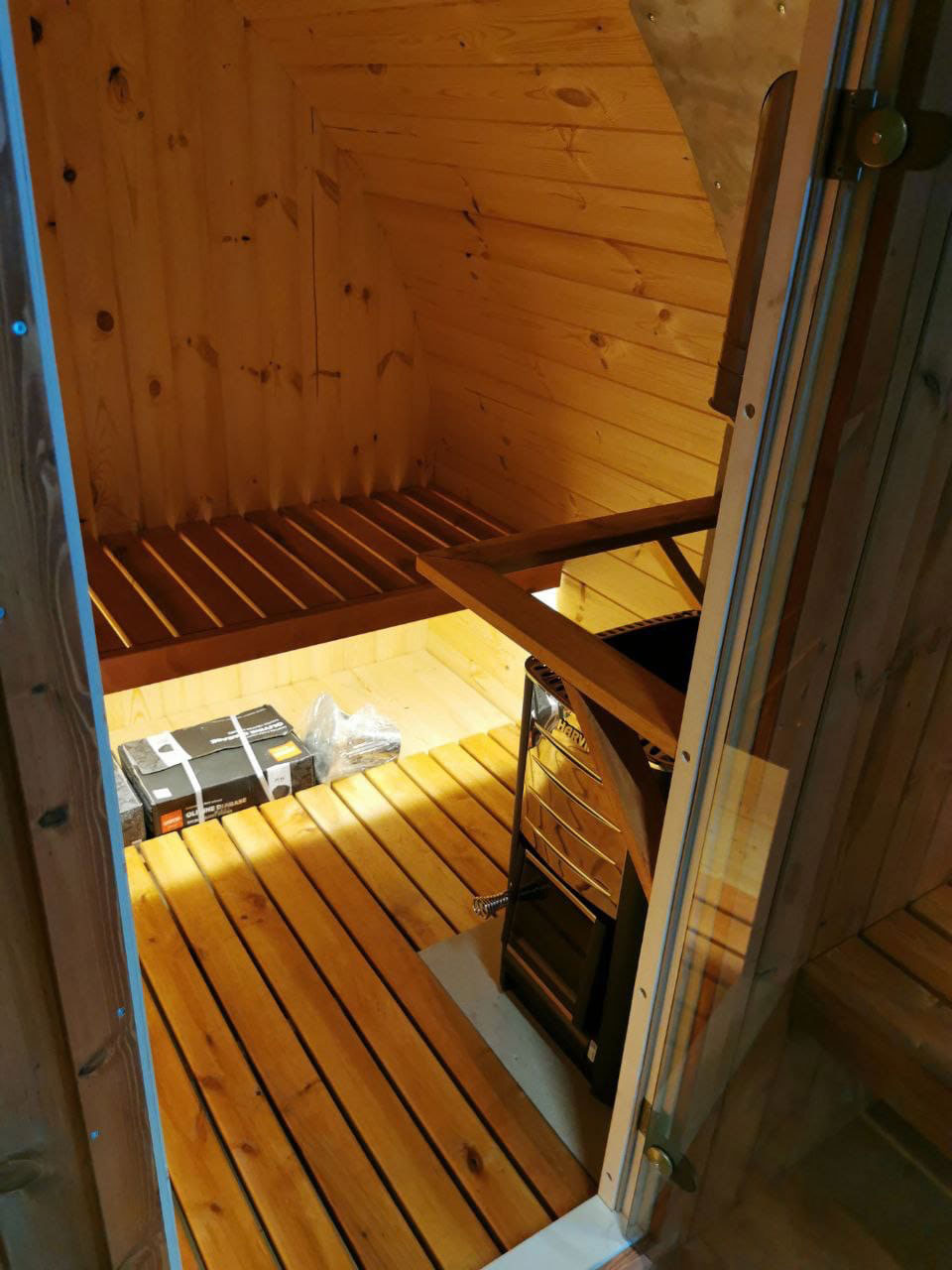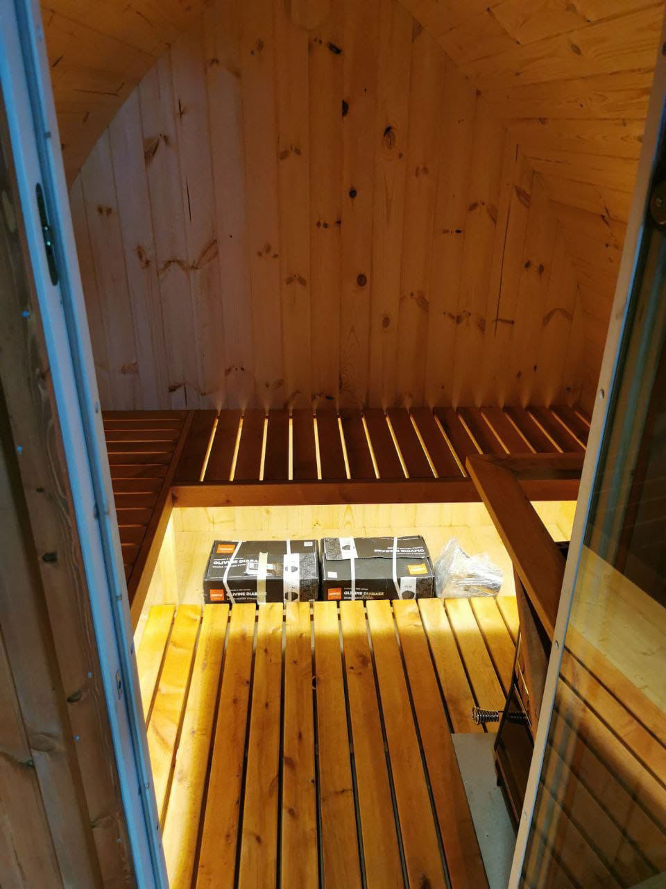 This sauna comes fully assembled and pre-wired with interior LED lighting. We also include a complete set of subvolcanic sauna stones. Just plug in and enjoy!