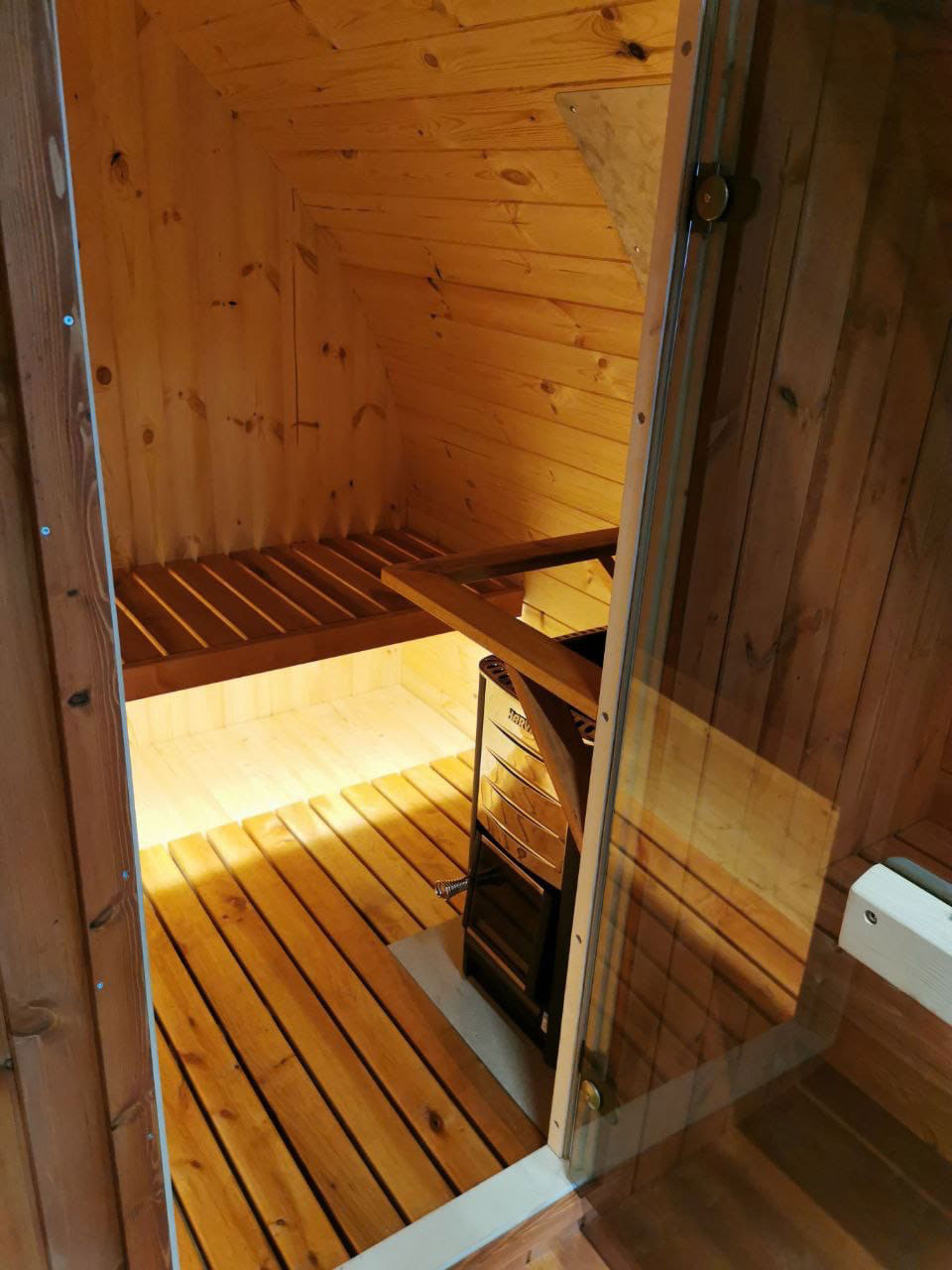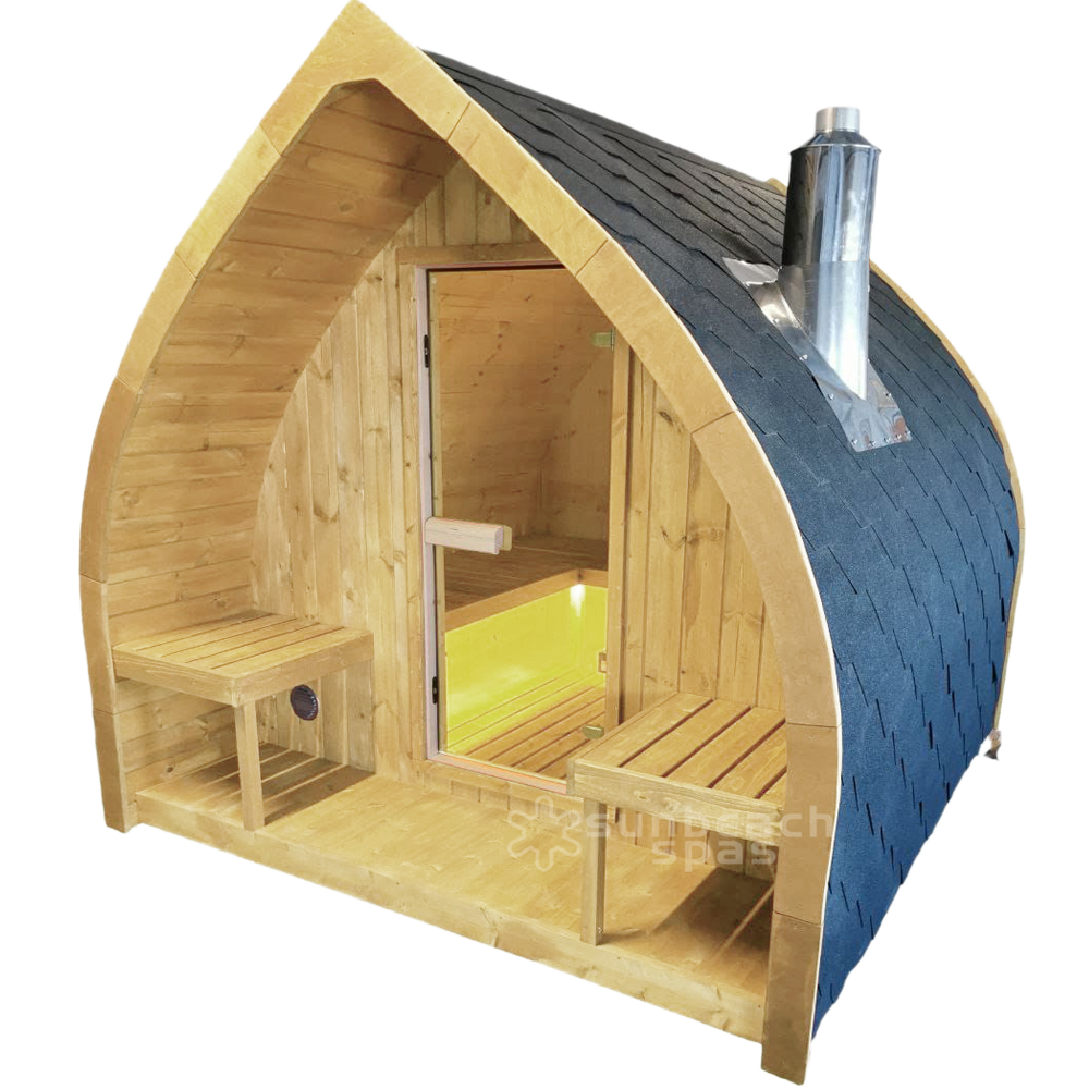 The traditional Scadinavian-style sauna. A classic, timeless design that brings true nordic elegance and class. The interior contains luxurious alder benches, and comfortable room for 6 adults. Add an optional panoramic safety glass rear wall for a stunning view of your garden while bathing.