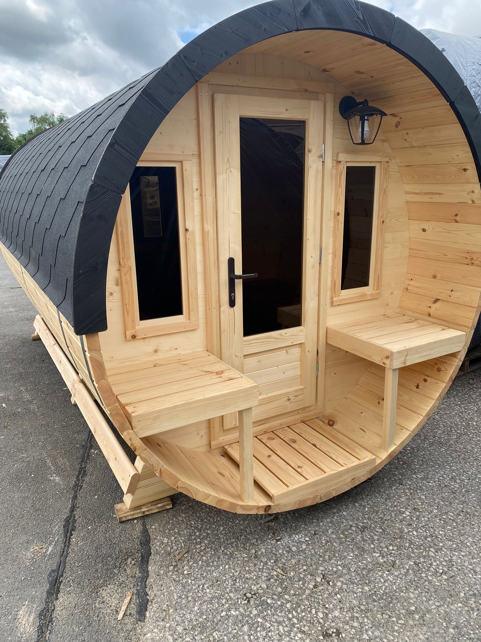 Delivered fully assembled, ready for you to enjoy. Standard colour variation is Natural Spruce timber with black Ketpal roof felt.